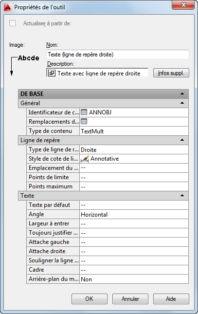 - Prenez l'habitude lorsque vous créez des outils de palette de prévoir des mécanismes d'automatisation. A l'exception des outils de contenu AEC, un large éventail de propriétés peut être préconfiguré pour automatiser et normaliser davantage la création d'objets.