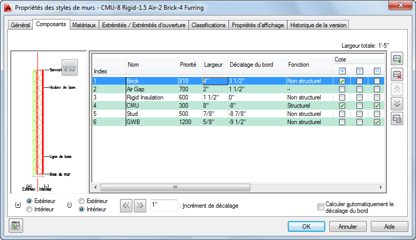 - La définition de style d'un mur doit inclure un côté extérieur et un côté intérieur afin de garantir une cotation AEC plus précise.