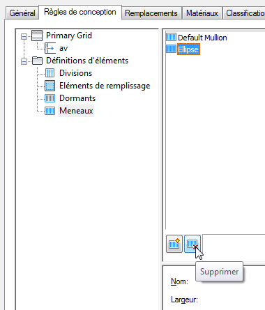 Cette procédure permet de supprimer une définition de meneau dont vous n'avez plus besoin. Vous ne pouvez pas supprimer une définition de meneau actuellement affectée à un meneau, mais vous pouvez la supprimer si elle est affectée comme remplacement pour un meneau. En outre, vous ne pouvez pas supprimer la définition de meneau par défaut, mais vous pouvez la modifier au besoin.