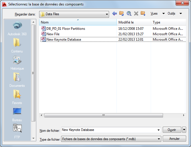 - Dans la fenêtre Sélectionnez la base de données des composants, recherchez la base de données qui vous intéresse et cliquez sur Ouvrir.
