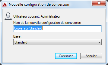 Boîte de dialogue Nouvelle configuration de conversion