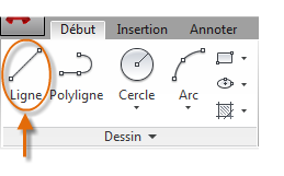 La ligne constitue l'élément de base et l'objet le plus courant dans les dessins AutoCAD. Pour dessiner une ligne, cliquez sur l'outil Ligne.