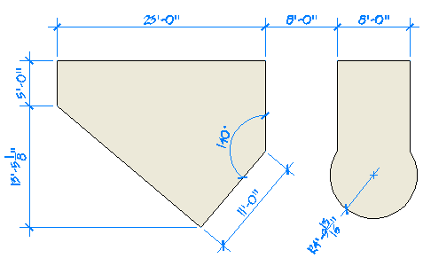 Un exemple de plusieurs types de cotes utilisant un style de cote architectural avec des unités anglo-saxonnes est présenté ci-dessous.