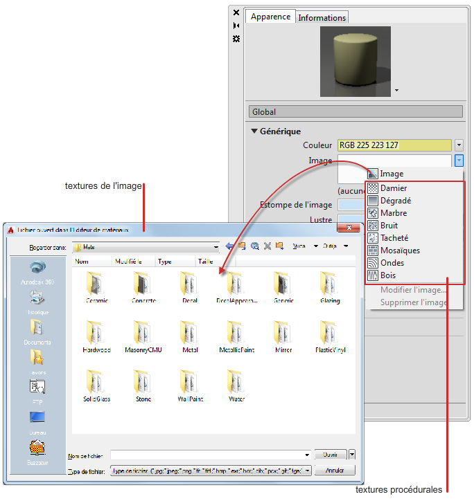 Il existe deux types de textures : image et procédurale.