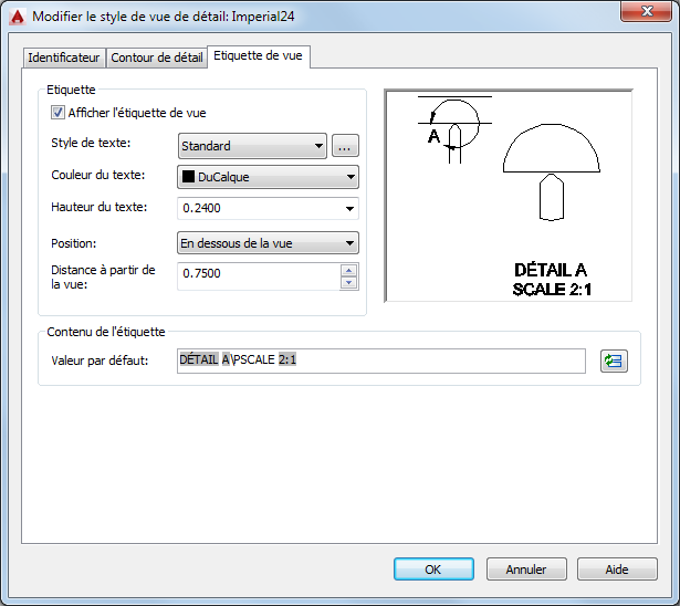 - Indique le style de texte à utiliser pour l'étiquette de la vue de détail.