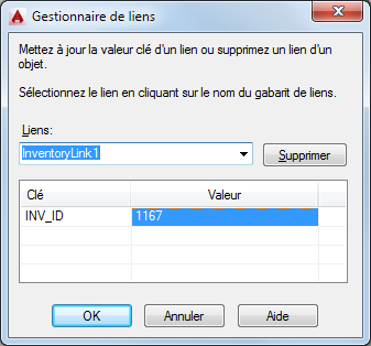 Affiche toutes les valeurs clés définies pour le lien sélectionné. Pour afficher la liste des valeurs correspondant à un champ spécifique, cliquez sur une cellule Valeur et choisissez [...].