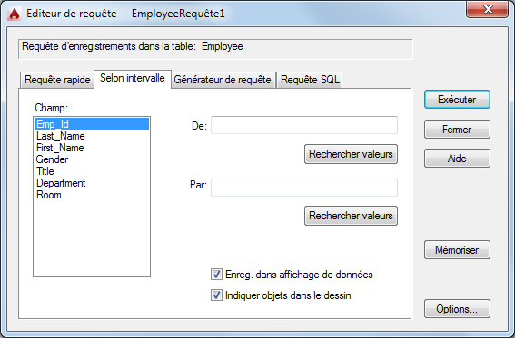 Indique la première valeur de l'intervalle. La requête renvoie tous les enregistrements ou objets graphiques supérieurs ou égaux à cette valeur.