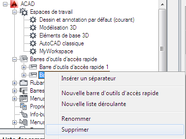 Suppression d'une commande ou d'un contrôle (éditeur Personnaliser l'interface utilisateur)