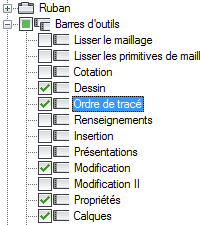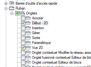 Utilisez l'éditeur Personnaliser l'interface utilisateur pour contrôler l'affichage de la barre d'outils d'accès rapide, des groupes de fonctions et des onglets du ruban, des palettes d'outils, des barres d'outils et des menus déroulants.