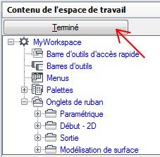 - Dans le volet Contenu de l'espace de travail, cliquez sur Terminé.
