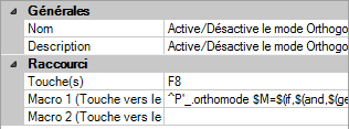 - Dans la zone Macro 2 (Touche vers le haut), entrez une macro à exécuter lorsque la touche de remplacement temporaire est relâchée. Lorsqu'aucune valeur n'est définie, le fait de relâcher la touche rétablit l'état antérieur de l'application et des paramètres de dessin (avant utilisation du remplacement temporaire).
