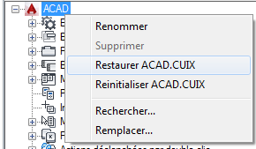 Remarque : Lors de la réinitialisation, seuls les fichiers CUIx du dossier UserDataCache figurant dans l'emplacement d'installation du programme peuvent être réinitialisés.