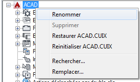 Créez, renommez, réinitialisez ou restaurez des fichiers de personnalisation (CUIx) à l'aide de l'éditeur Personnaliser l'interface utilisateur. Spécifiez le fichier de personnalisation principal ou d'entreprise du programme.