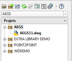 Le Gestionnaire de projets répertorie les fichiers situés sous le dossier AEGS. Les nouveaux dessins que vous ajoutez à partir de ce point sont ajoutés à la fin dans l'ordre des dessins. Vous pouvez, à présent, accéder aux fichiers requis pour les exercices de ce manuel.