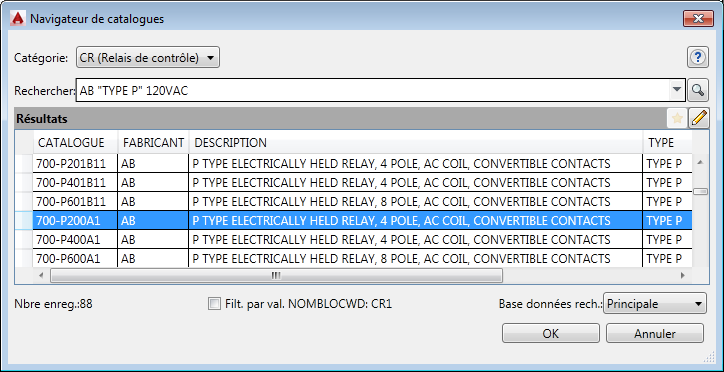 Le code fabricant et la référence catalogue sélectionnés s'affichent dans la boîte de dialogue Insérer / Modifier un composant. Lorsque vous cliquez sur OK dans la boîte de dialogue, les valeurs sont transférées au symbole.