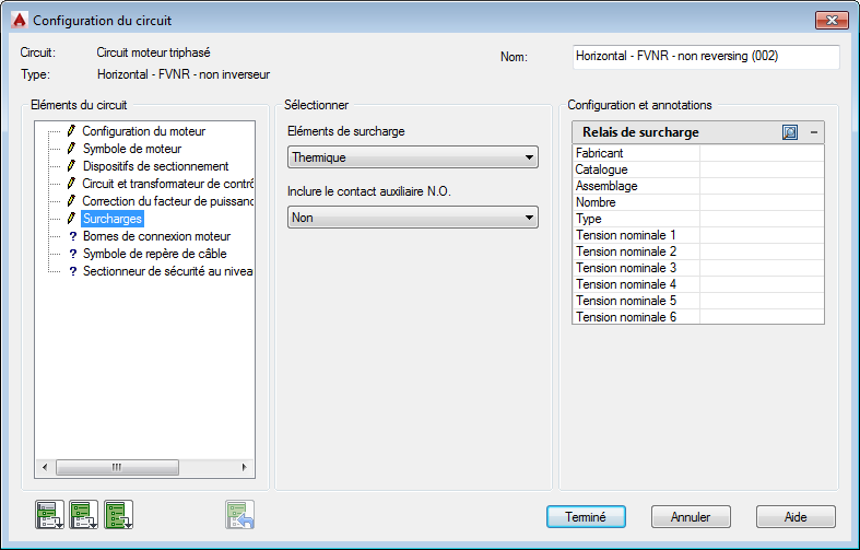 Dans la section Sélection, sélectionnez Eléments de surcharge: Thermique,