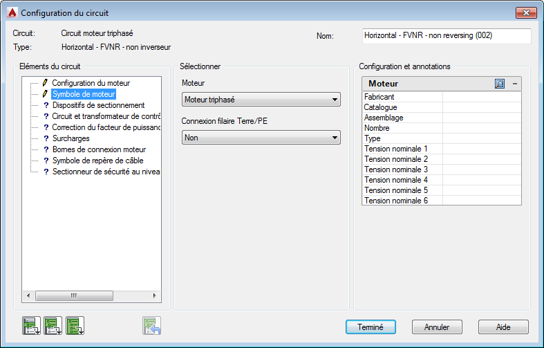 Utilisez le Générateur de circuits pour insérer et configurer un circuit moteur triphasé.