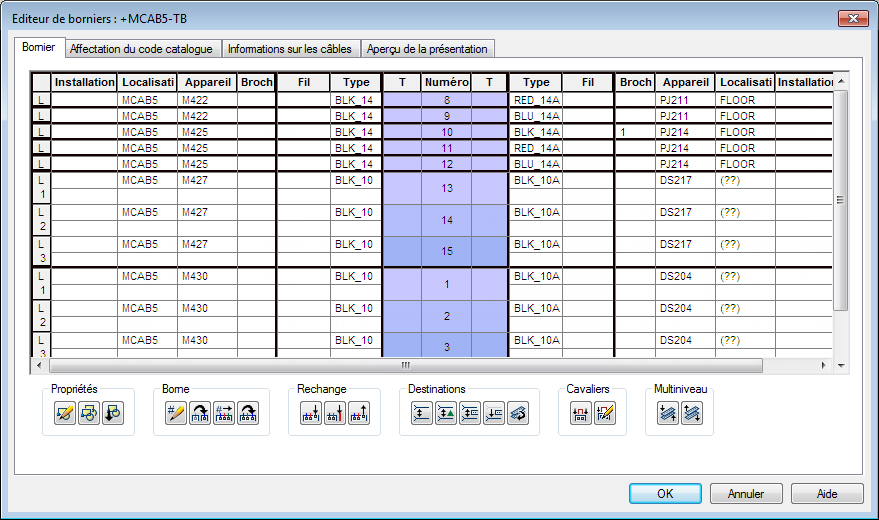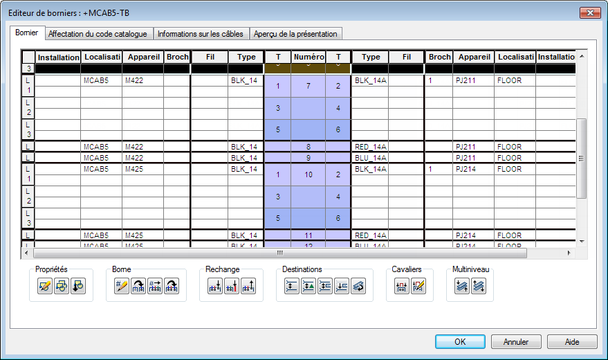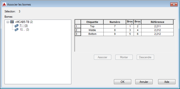 Utilisez l'Editeur de borniers pour gérer les bornes, modifier les propriétés des bornes, associer les bornes et insérer le bornier graphique.