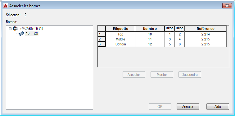 Dans la boîte de dialogue Editeur de bornier, cliquez sur OK.
