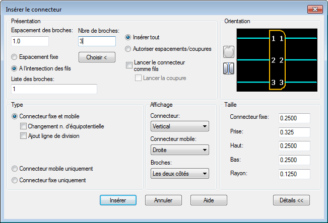 Spécifiez le point d'insertion ou [Z=zoom, P=panoramique, X=intersection des fils, V=horizontal/vertical, TAB=basculer] :