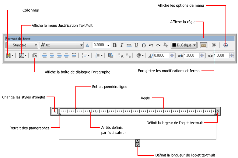 Crée ou modifie les objets texte multiligne ou d'une seule ligne.