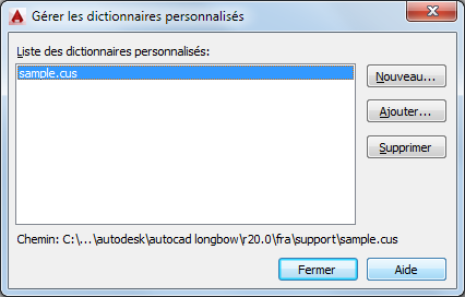 Permet de gérer les dictionnaires personnalisés en vous laissant ajouter ou supprimer des dictionnaires.