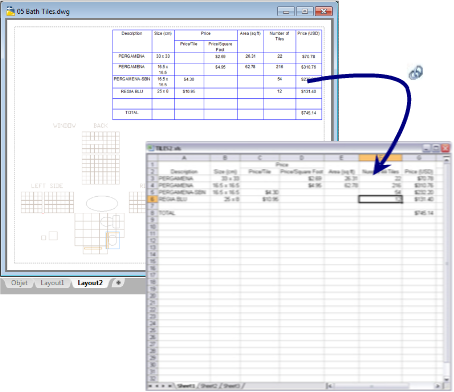 Si une feuille de calcul liée a été modifiée, par exemple, si une rangée ou une colonne y a été ajoutée, le tableau dans le dessin peut être mis à jour en conséquence à l'aide de la commande MAJLIAISONDONNEES. De même, si une modification a été apportée à un tableau du dessin, vous pouvez mettre à jour la feuille de calcul liée à l'aide de la même commande.