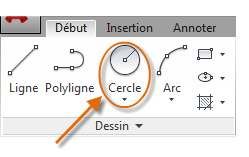 L'option par défaut de la commande CERCLE vous demande de spécifier un centre et un rayon.