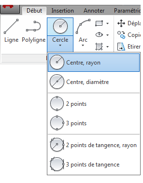 Les autres options de cercle sont disponibles dans la liste déroulante :