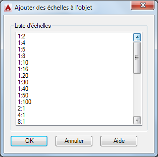 Affiche la liste des échelles pouvant être ajoutées à l'objet annotatif sélectionné.