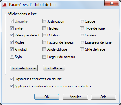 Gère l'apparence de la liste des attributs dans le Gestionnaire des attributs de bloc.