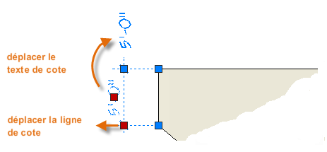 Dans cet exemple, vous sélectionnez la cote pour afficher ses poignées. Vous pouvez ensuite cliquer sur la poignée du texte de cote et la faire glisser vers un nouvel emplacement. Vous avez également la possibilité de cliquer sur une des poignées situées à l'extrémité de la ligne de cote, puis de faire glisser la ligne de cote.