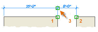 Pour la cote 8'-0" ci-dessous, vous pouvez utiliser l'autre méthode. Vous lancez la commande COTLIN, puis cliquez sur deux extrémités (1 et 2) et sur l'emplacement de la ligne de cote (3). Pour aligner les lignes de cote, le point 3 a été accroché à l'extrémité de la ligne de cote créée précédemment.