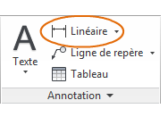 Vous pouvez créer des cotes horizontales et verticales à l'aide de la commande COTLIN. Notez que le bouton correspond à une liste déroulante qui contient les commandes de cote les plus courantes.