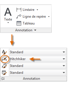 Le nom du style de cote courant (dans ce cas, Hitchhiker) s'affiche dans la liste déroulante du groupe de fonctions Annotation.