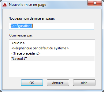Si vous ouvrez la boîte de dialogue Nouvelle mise en page depuis le gestionnaire du jeu de feuilles, seules les mises en page nommées dans le fichier des autres mises en page sont répertoriées.