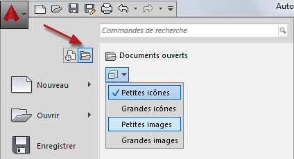 - Dans la zone de recherche de commande, cliquez sur le bouton Options d'affichage et sélectionnez une option d'affichage.