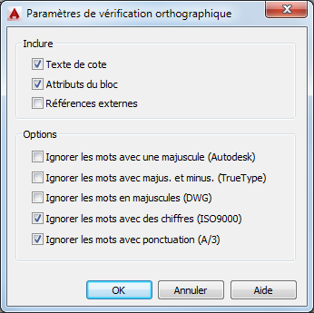 Permet d'indiquer les options de texte spécifique qui seront vérifiées dans votre dessin.