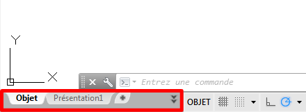Par défaut, un onglet Objet et plusieurs onglets Présentation nommés sont affichés dans l'angle inférieur gauche de la zone de dessin.