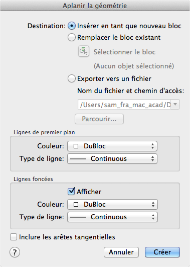 Indique que la représentation aplanie doit être insérée en tant que bloc dans le dessin courant.