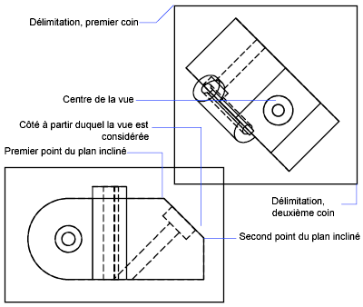 Deux points permettent de définir le plan incliné utilisé pour la projection auxiliaire. Les deux points doivent être situés dans la même fenêtre.