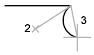 Spécifiez l'extrémité de l'arc ou [Angle/Longueur]: Spécifiez un point (3) ou entrez une option.