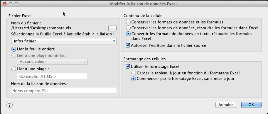 Si l'option ci-dessus est sélectionnée, les modifications de formatage sont mises à jour lorsque la commande MAJLIAISONDONNEES est utilisée.
