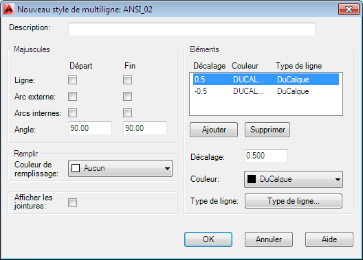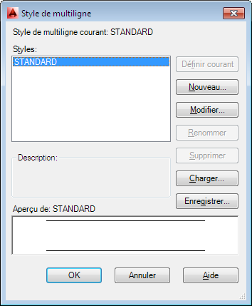 Si vous créez plusieurs styles de multilignes, enregistrez le style courant avant d'en créer un autre, afin d'éviter de perdre les modifications apportées au premier style.