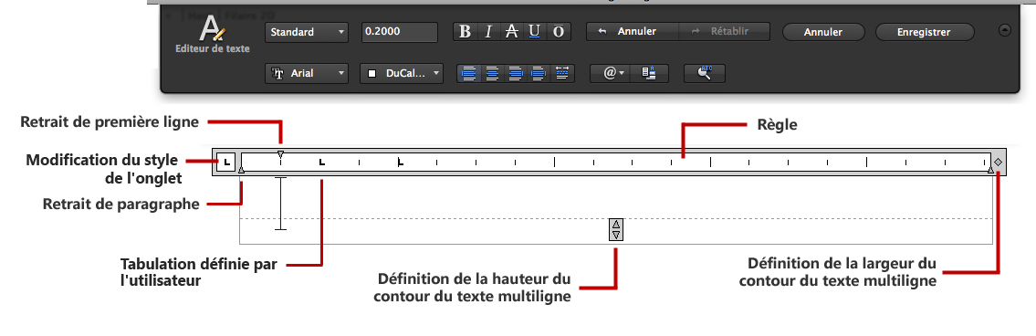 Crée ou modifie les objets texte multiligne ou d'une seule ligne.