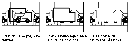 Si une polyligne est utilisée pour créer un objet de nettoyage, elle doit être fermée, ne contenir que des segments de ligne et être d'épaisseur nulle.