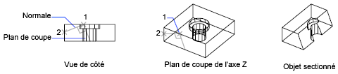 Définit le plan de coupe en indiquant un point sur le plan et un autre point sur l'axeZ (perpendiculaire) du plan.