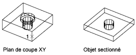 Aligne le plan de coupe avec le plan XY du système de coordonnées utilisateur (SCU) courant. La spécification d'un point définit l'emplacement du plan de coupe.