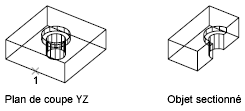 Aligne le plan de coupe avec le plan YZ du système de coordonnées utilisateur (SCU) courant. La spécification d'un point définit l'emplacement du plan de coupe.