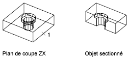 Aligne le plan de coupe avec le plan ZX du système de coordonnées utilisateur (SCU) courant. La spécification d'un point définit l'emplacement du plan de coupe.